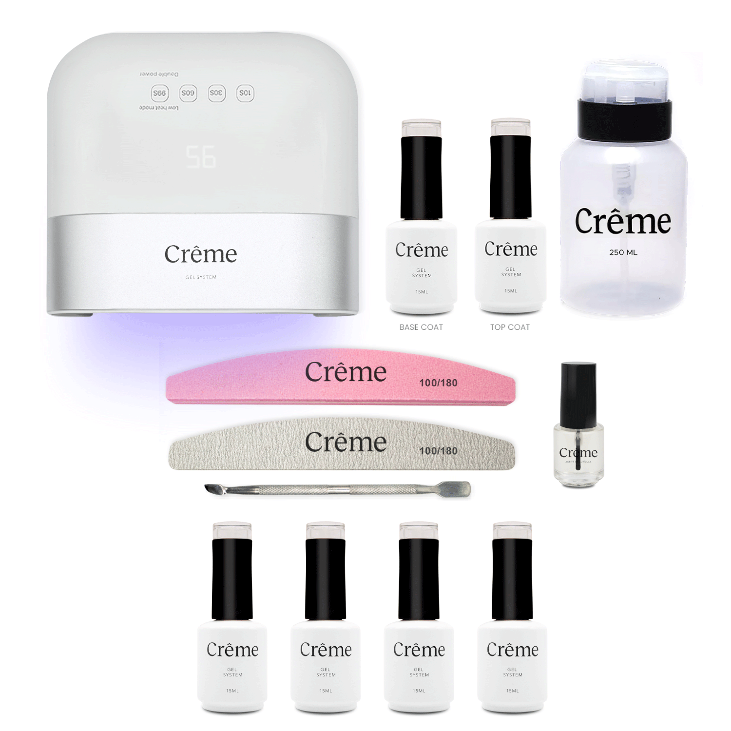 - Top Coat 15ml: Protección, brillo y acabado profesional.