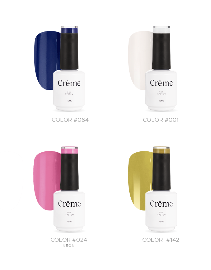 - 4 esmaltes en gel 15ml: c/u rinde hasta +50 aplicaciones.